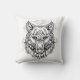 Visão frontal da cabeça de lobo com decorações étnicas e símbolos espirituais da lua e flechas. Retrato da frente do Predador com coalhada e ornamentos tribais.