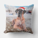 Almofada Cachorro Bonito Sentado No Chapéu De Natal Da Neve