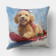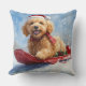 Almofada Cachorro de Goldendoodle no Sledge Deixe-o nevar n