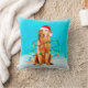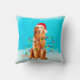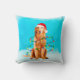 Ouro Retriever Dog Sentado na neve com o Travesseiro da Praça Santa Hat de Natal. Uma ideia perfeita para alguém que ama esta raça de cães.