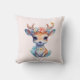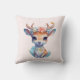 Travesseiro com uma ilustração adorável. Um doce veado com olhos grandes, galhadas e um pequeno amigo da borboleta. design querido.