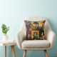Esta almofada de lançamento é ilustrada com uma coleção de raças de cães em roupas.