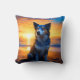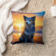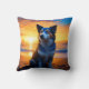 Um cachorro sentado numa praia no pôr do sol, ai art. Cachorro, travesseiro temático.