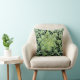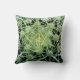 Este travesseiro decorativo toma-o direito no centro de um teste padrão exótico do cacto. As espinhas verdes e brancas irradiam em um design abstrato circular em um fundo preto.