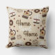 Almofada de "Home doce Home" com uma bela xícara de café a vapor ilustrada e combinando pote de café decorado com corações e donuts. Chocolate marrom ao contrário.