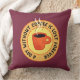 Engraçado travesseiro de amante de café com o texto A Day Without Coffee É Perdido Para Sempre e uma xícara de café a vapor em cores amarela e laranja.