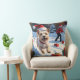 Almofada Cairn Terrier correndo em neve com chapéu de Natal