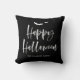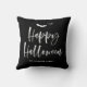 Celebre a estação assustadora com este travesseiro de Halloween personalizável com "Feliz Dia das Bruxas" em letras brancas de pincel em fundo preto. Perfeito por adicionar charme festivo à sua sala de estar, quarto ou decoração de festas. O ousado contraste ajustado bem com os temas modernos e clássicos do Dia das Bruxas. Você pode personalizá-la adicionando nomes ou frases curtas para torná-la realmente única. Este travesseiro faz uma adição aconchegante e na moda à sua decoração de outono.