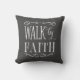 Este travesseiro cinzento do acento caracteriza a frase "caminhada pela fé" e um teste padrão de ponto suíço elegante na parte traseira. Personalize-o para mudar a cor para combinar sua decoração home!