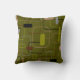 Este travesseiro decorativo tem um design moderno século médio de retângulos em verde, cinza, marrom e preto.
