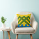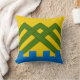 "Ou, três chevronéis com um vert marcado, uma base com um azure embrenhado." Crachá Populace para o Cantão de Wyldewode na Sociedade para o Anacronismo Criativo. A parte de trás do travesseiro é um padrão medieval em cores correspondentes.