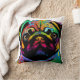 Um impressão brilhante e colorido do pop art de um cão do Pug em um fundo branco.