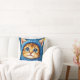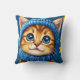 Cara de gato ruivo adorável impressa em uma almofada decorativa macia vestindo um capuz de malha azul. Decoração encantadora e caprichosa para berçários, quartos de crianças, espaços aconchegantes, presentes e amantes de animais de estimação.