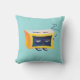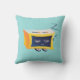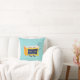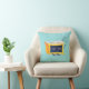 Travesseiro do relógio Kawaii adormecido com uma ilustração digital engraçada que mostra um personagem amarelo de despertador bonito dormindo sobre um fundo azul claro alegre.