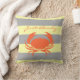 Listras e neblinas e caranguejos-corais fazem um travesseiro decorativo de praia para a decoração costeira. Amarelo e Cinza com coral.