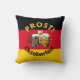 Travesseiro Patriótico OKTOBERFEST mostrando a bandeira da ALEMANHA ao fundo, com três cervejas e PROST! no topo, em texto amarelo curvo. Na parte inferior, o texto personalizável lê OKTOBERFEST. Ideal para decoração com tema cervejeiro para criar o ambiente certo para festas privadas, celebrações públicas, festivais de cerveja, durante o Oktoberfest, etc. Itens correspondentes e suprimentos de partes estão disponíveis na Coleção CHEERS & BEERS por Designs Bereanos.