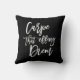 Aproveite o dia com este travesseiro decorativo engraçado e motivacional que nos mostra nossa divertida e nova visão da clássica expressão latina. "Carpe that effing diem" aparece em tipografia de pincel em estilo branco, escrita à mão, sobre um fundo preto chic. Design repete-se no lado oposto.