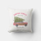 Ilustração de um carro de suv cor-de-rosa penteado com árvore de Natal cortada fresca amarrada ao topo. Personalize o texto.