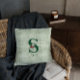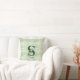 Lindo e festivo design de feriado apresenta letra maiúscula S com preenchimento de brilho verde e decorado com flores de inverno e bouquet de aquarela de folhagem em fundo xadrez verde desgastado e suave. Personalize com nome ou outra mensagem