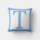 Travesseiro decorativo da letra T. monograma Bonito (solteiro inicial). A fronteira e a letra do solteiro são feitas em azul-bebê. Nossos travesseiros decorativos vêm em três tamanhos: quadrado de 16" x 16", quadrado de 20" x 20", ou travesseiro lombar de 13" x 21" e algodão ou poliéster. Produzido por mães de solteiro que trabalham de forma sustentável nos EUA, sua compra personalizada de travesseiros contribui para quebrar o ciclo de pobreza para mães solteiros e seus filhos enquanto parece excelente em sua casa! De Scarebaby Design, apoiado pela garantia Zazzle.