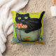 Fun accent throw pillow done in a cartoon style graphics, with a black cat sitting in a flower pot. Great way to add a touch of whimsy and color to your room.