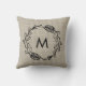 Almofada de Arremesso Casa de Campo Rústica com Pinhas Monogramada Louro com um fundo de aniagem natural. Um toque encantador de casa de campo para o seu Natal e decoração de inverno.
