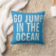 Férias caseiras de praia ou travesseiro de condomínio é a cor do mar. Com um fundo azul e uma tipografia ousada extra "Vai pular no oceano" cobrir a maior parte de um lado do travesseiro. Entra no espírito do fim de semana com este travesseiro esquimético engraçado.