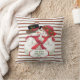 Este design adorável apresenta um estilo vintage, boneco de neve e neve vestindo lenços vermelhos e chapéus de férias. O fundo é formado por listras vermelhas e brancas de cana-doce e pode ser personalizado. O texto no final diz: "NOSSO PRIMEIRO NATAL - 20XX" e pode ser personalizado. Esta design está em ambos os lados do travesseiro.