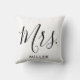A Sra. Modern Elegant Script Monogramding Joga Cushion. Um simples e elegante travesseiro de almofada de lançamento que mostra a Sra. com seu sobrenome casado. Um presente de excelente para um casal recém-casado!