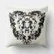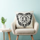 Celebre o seu casamento em estilo real com este travesseiro especial de manutenção do casamento real. A design apresenta aves amantes, coroa, anéis e corações. Personalize-o com os seus nomes, escritos em script, no verso. O design está preto sobre um fundo de marfim.