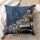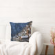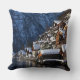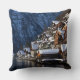 Almofada de travesseiro decorativo fotográfico com as fachadas das casas de madeira na lagoa de Hallstätter See lago sob uma camada de neve fresca no inverno em Hallstatt, Áustria.
