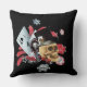 Um travesseiro de sorte divertida de Las Vegas para trazer-lhe boa sorte e sorte em seus jogos e jogos. Com um esqueleto gótico engraçado de jogador de pôquer rodeado por chips de pôquer, ás de cartas de espadas, roda de roleta e estrelas em um fundo preto escuro, e sorte no texto de Las Vegas.