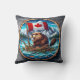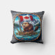 Almofada castor canadense com bandeira na paisagem montanho