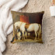 ALMOFADA CAVALO BRANCO COM CÃES E FALCONS EM ESTÁVEL