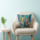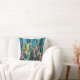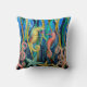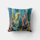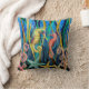 Um travesseiro do acento do divertimento com uma pintura colorida do mar dos cavalos marinhos, da estrela do mar e do coral em um fundo azul esverdeado da alga e das bolhas. Esta imagem pintado mão da aguarela tem muitas cores incluir o coral, o amarelo, o azul, o verde, a turquesa e o bege.