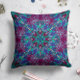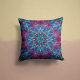 A radiant mandala design in teal, aqua, and violet blooms across a deep plum backdrop. This pillow adds a luxurious pop of jewel tones to your sofa, bed, or accent chair.