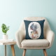 O travesseiro bonito para amantes de música apresenta uma ilustração cello de aquarela em branco com quadro oval de borda preta sobre fundo azul escuro