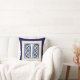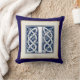 Uma bela e decorativa letra celta emboscada iluminada com cabeças de dragão de cinza sobre um fundo azul escuro e veludo. Este travesseiro tem uma dupla borda de designs de pedra, luz com uma borda escura em um lado, que é revertida no verso. Altere o plano de fundo para corresponder à sua decoração.
