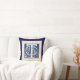 Uma bela e decorativa letra celta emboscada iluminada com cabeças de dragão de cinza sobre um fundo azul escuro e veludo. Este travesseiro tem uma dupla borda de designs de pedra, luz com uma borda escura em um lado, que é revertida no verso. Altere o plano de fundo para corresponder à sua decoração.