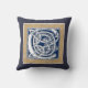 Uma bela e decorativa letra celta emboscada iluminada com cabeças de dragão de cinza sobre um fundo azul escuro e veludo. Este travesseiro tem uma dupla borda de designs de pedra, luz com uma borda escura em um lado, que é revertida no verso. Altere o plano de fundo para corresponder à sua decoração.
