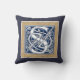 Uma bela e decorativa letra celta emboscada iluminada com cabeças de dragão de cinza sobre um fundo azul escuro e veludo. Este travesseiro tem uma dupla borda de designs de pedra, luz com uma borda escura em um lado, que é revertida no verso. Altere o plano de fundo para corresponder à sua decoração.
