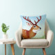 Ilustração detalhada de um veado com galhadas em uma paisagem serena e nevada com verde e cogumelos.