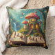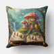 Uma cena mágica com fadas em uma floresta com uma casa em forma de cogumelo, uma cachoeira em cascata e uma apresentação musical criando uma atmosfera encantadora em meio a arredores naturais detalhados.