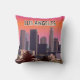 A ilustração colorida do vetor que caracteriza uma skyline lindo dominou por arranha-céus e por palmeiras de Los Angeles do centro com um por do sol californiano bonito no fundo.