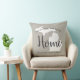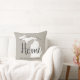 O travesseiro de boas-vindas apresenta um design de tipografia com texto de script "Home" e mapa do estado de Michigan. Personalize com seu monograma de cidade e família. Cinzas quentes, preto macio e branco. Um padrão de listras horizontais veste a parte de trás do travesseiro.