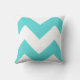 Travesseiro decorativo decorativo na cerceta e branco que caracteriza um grande gráfico do teste padrão de ziguezague em ambos os lados.