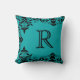 Acentue sua casa em uma forma elegante com um travesseiro do damasco do monograma na cerceta & no preto.