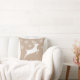 A design de silhueta original do Destei de um veado junto com alguns flocos de neve decorativos. A cor de fundo é bege. Há também uma área de texto personalizável que agora diz: "Feliz Natal".