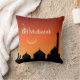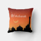 Ilustração do cumprimento de Eid com uma cena do céu da noite: silhueta de uma mesquita em um céu vermelho da noite.