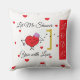 Está chovendo corações por todo este travesseiro! E este pequeno personagem cardíaco é fazer que aconteça! Aproveite. Personalizável. Trabalho original; © Sharon Lee Hudson.